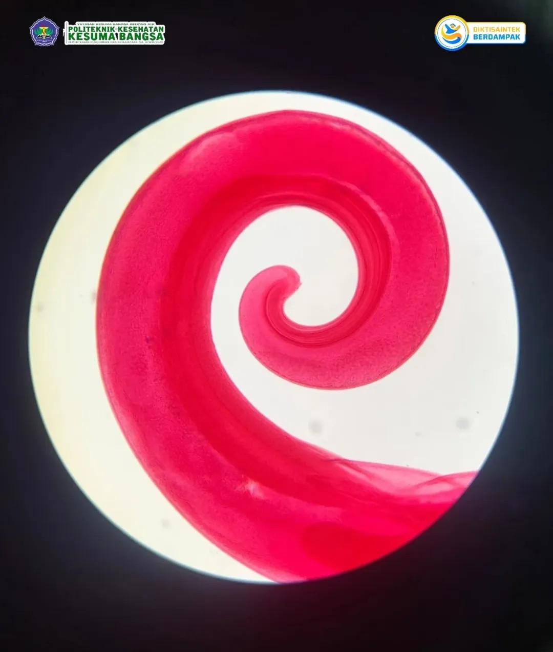 Tim perwakilan dari Poltekkes Kesuma Bangsa sukses memukau dewan juri dengan karya fotografi mikroskopis mereka yang berjudul ["🪱 Male Trichuris trichiura worm” "🔍 Under the lens, there is an invisible universe. This is a portrait of the male Trichuris trichiura, with its silhouette curving like a whip. A masterpiece of symmetry from nature 🌿. Not just a parasite, but also a reminder that beauty can be found even in the most unexpected places✨.]. Foto tersebut menampilkan ["The Spiral Charm of the Hidden World"] dengan detail yang sangat tajam dan komposisi artistik yang memukau.